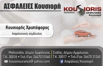 ΚΟΥΣΙΟΡΗΣ ΧΡΙΣΤΟΦΟΡΟΣ ΜΑΛΕΣΙΑΔΑ , ΑΜΟΡΓΙΑΝΟΙ , ΕΜΠΕΣΟΣ , ΣΤΑΘΑΣ , ΧΑΛΚΙΟΠΟΥΛΟΜαλεσιάδα , Χαλκιόπουλο , ΑιτωλοακαρνανίαΑσφάλειες - ΑσφαλιστέςΥπηρεσίες 2647051060