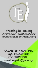 customer tabsΕπικοινωνίαΔιαιτολόγοι - ΔιατροφολόγοιΥγείαΚαζαντζή 4-6 ΑγρίνιοΑΓΡΙΝΙΟ ΑΙΤΩΛΟΑΚΑΡΝΑΝΙΑΣΑΙΤΩΛΟΑΚΑΡΝΑΝΙΑΣΤΕΡΕΑ ΕΛΛΑΔΑ 2641401706 6942815041e.gerki@yahoo.grΔιαιτολογικό Γραφείο- Ελευθερία Γκέρκη Το προτείνω (έχει προταθεί 0 φορές) ΦωτογραφίεςFacebook LikeShare on FacebookTweet Widget