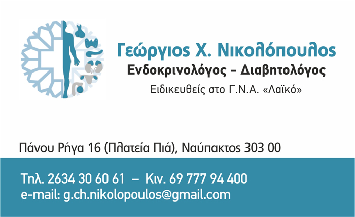 customer tabsΕπικοινωνίαΠαθήσεις ΘυρεοειδούςΣακχαρώδης διαβήτηςΠαχυσαρκίαΔυσλιπιδαιμίαΠαθήσεις παραθυρεοειδώνΟστεοπόρωσηΠαθήσεις υπόφυσηςΠαθήσεις επινεφριδίωνΝευροενδοκρινή νεοπλάσματαΓυναικεία/Ανδρική υπογονιμότηταΔιαταραχές έμμηνου ρύσεως ΕνδοκρινολόγοιΔιαβητολόγοιΥγείαΡήγα Π. 16, Πλατεία Πια, ΝαύπακτοςΝΑΥΠΑΚΤΟΣ ΑΙΤΩΛΟΑΚΑΡΝΑΝΙΑΣΑΙΤΩΛΟΑΚΑΡΝΑΝΙΑΣΤΕΡΕΑ ΕΛΛΑΔΑ 2634306061 6977794400g.ch.nikolopoulos@gmail.comΕνδοκρινολογικό Ιατρείο Γεωργίου Νικολόπουλου Το προτείνω (έχει προταθεί 0 φορές) ΦωτογραφίεςFacebook LikeShare on FacebookTweet Widget